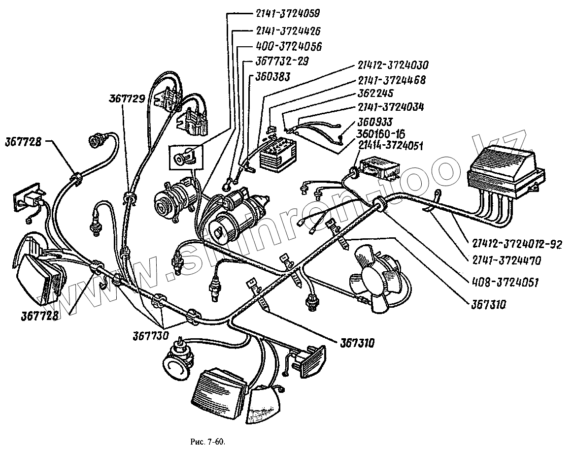 Электропровода и соединения - задний жгут автомобилей 2141, 21412, 214122
