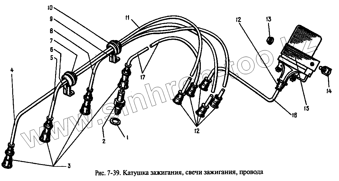 Каталог запасных частей к технике: АЗЛК Москвич-2335. Катушка зажигания, свечи зажигания, провода