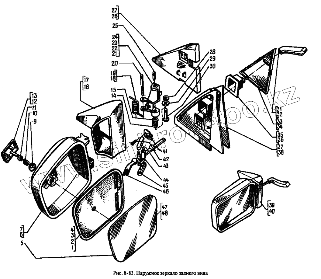 Каталог запасных частей к технике: АЗЛК Москвич-2335. Наружное зеркало заднего вида