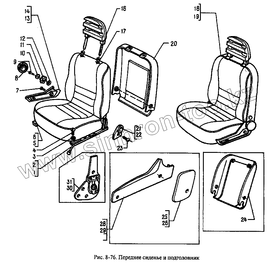 Каталог запасных частей к технике: АЗЛК Москвич-2335. Переднее сиденье и подголовник