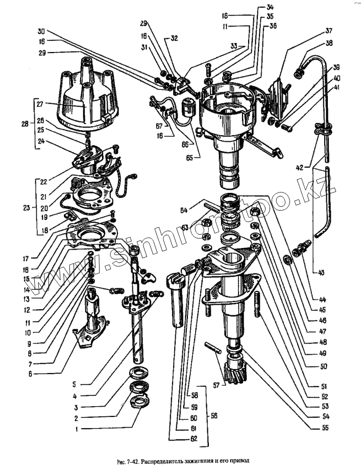 Каталог запасных частей к технике: АЗЛК Москвич-2335. Распределитель зажигания и его привод