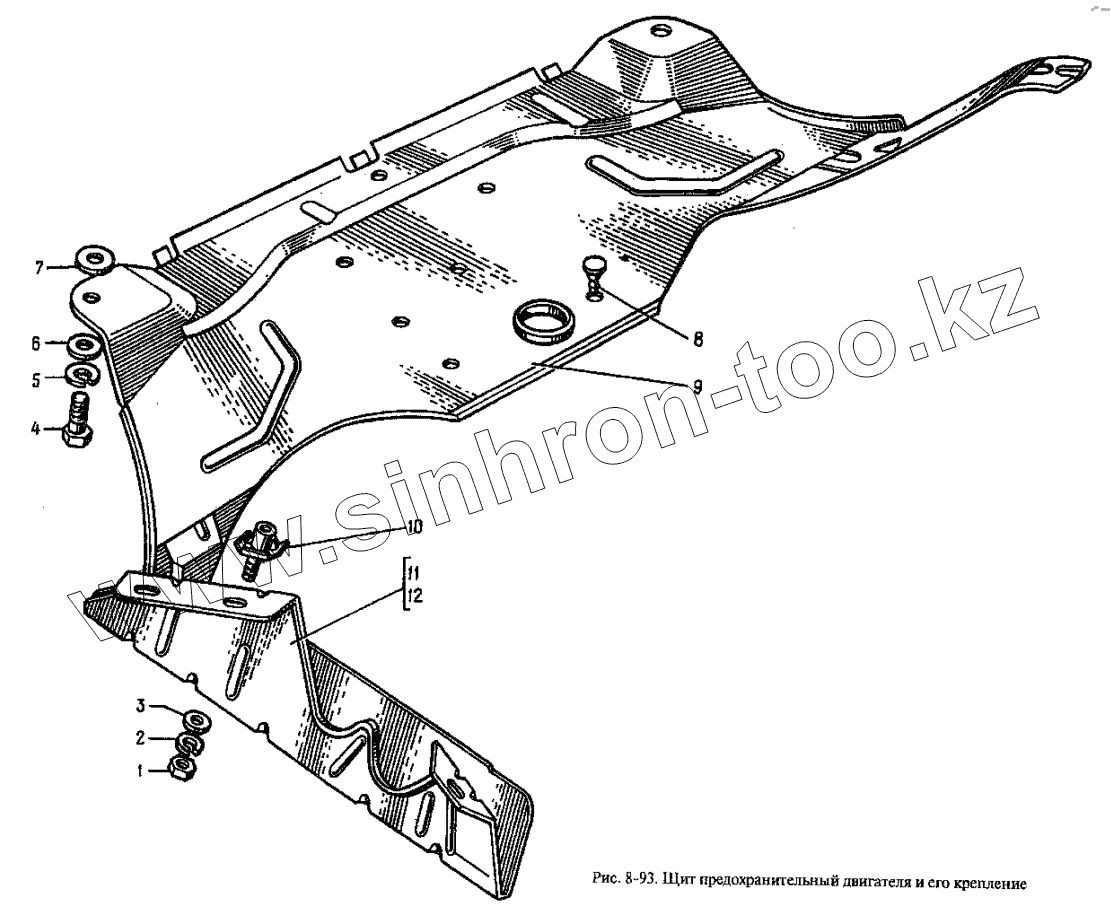 Каталог запасных частей к технике: АЗЛК Москвич-2335. Щит предохранительный двигателя и его крепление