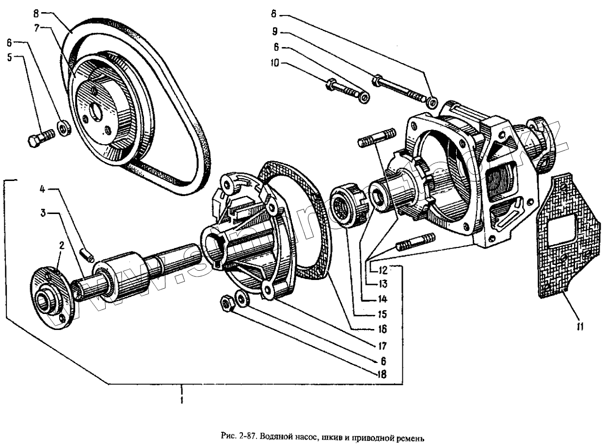 Каталог запасных частей к технике: АЗЛК Москвич-2335. Водяной насос, шкив и приводной ремень