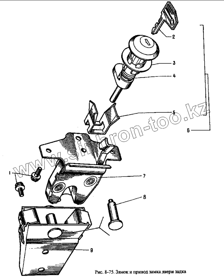 Каталог запасных частей к технике: АЗЛК Москвич-2335. Замок и привод замка двери задка