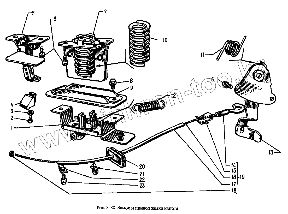 Каталог запасных частей к технике: АЗЛК Москвич-2335. Замок и привод замка капота