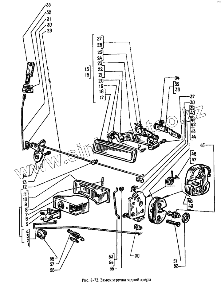 Каталог запасных частей к технике: АЗЛК Москвич-2335. Замок и ручка задней двери