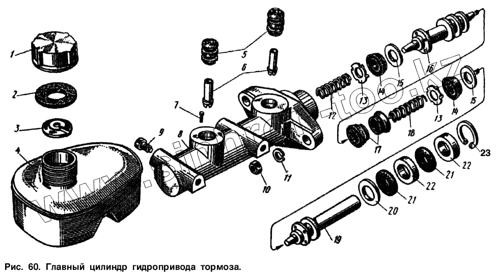 Каталог запасных частей к технике: АЗЛК Москвич-2734. Главный цилиндр гидропривода тормоза