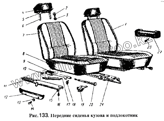 Каталог запасных частей к технике: АЗЛК Москвич-2734. Передние сиденья кузова и подлокотник