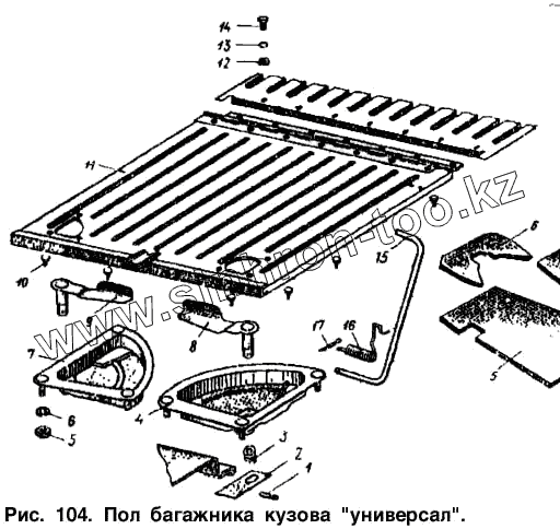 Каталог запасных частей к технике: АЗЛК Москвич-2734. Пол багажника кузова "универсал"