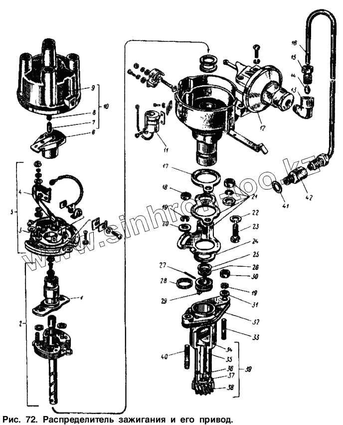 Каталог запасных частей к технике: АЗЛК Москвич-2734. Распределитель зажигания и его привод