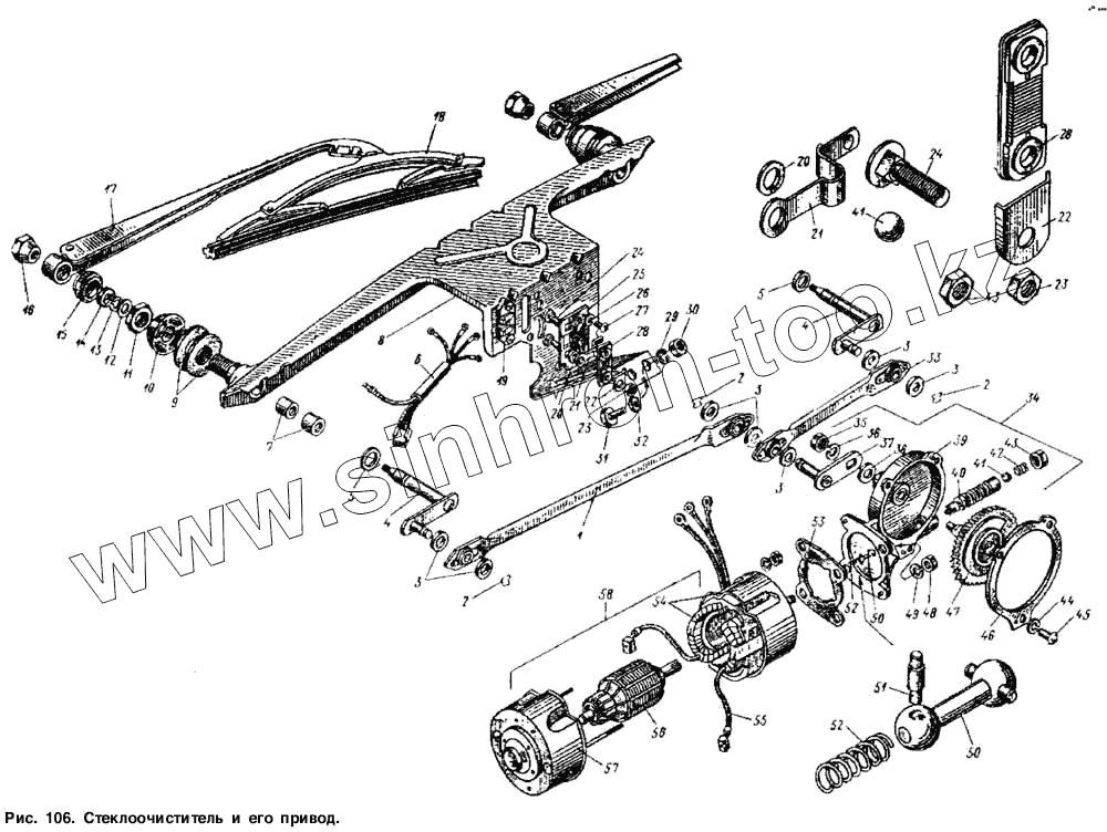 Каталог запасных частей к технике: АЗЛК Москвич-2734. Стеклоочиститель и его привод