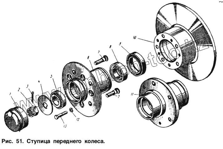 Каталог запасных частей к технике: АЗЛК Москвич-2734. Ступица переднего колеса