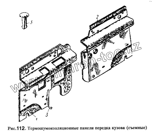 Каталог запасных частей к технике: АЗЛК Москвич-2734. Термошумоизоляционные панели передка кузова (съемные)