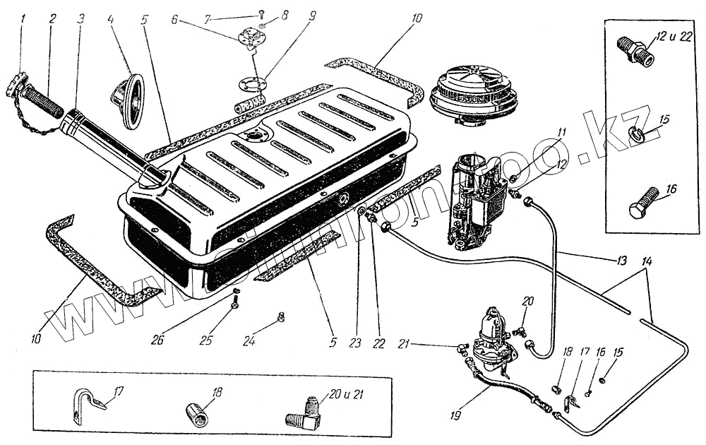 | 21 | 367602-П2 | Угольник конечный трубки от бензонасоса к карбюратору | |