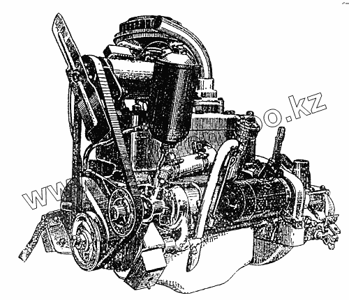 Двигатель автомобиля "Москвич" (вид спереди)