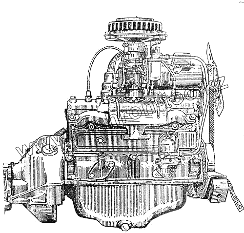 Двигатель автомобиля "Москвич" (вид спереди)