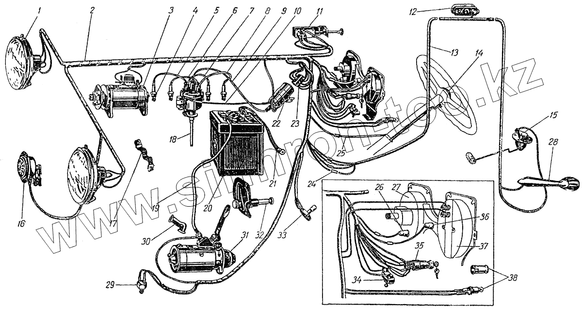 | 13 | 400-3724015-Г | Пучок проводов к заднему фонарю, плафону и реостату | |