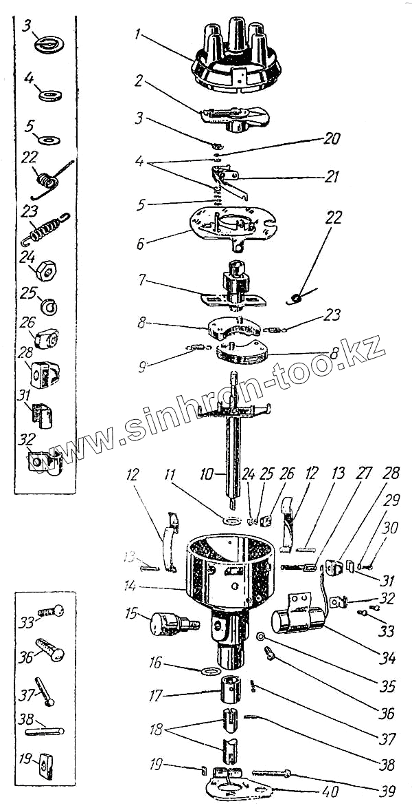 | 36 | Н-1314 | Винт крепления пластины прерывателя | |