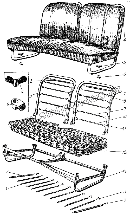 Каталог запасных частей к технике: АЗЛК Москвич-400-420. Сиденье переднее