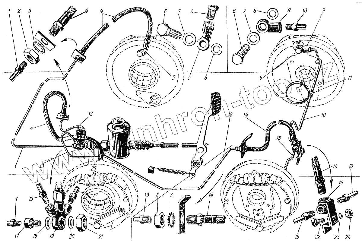 | 6 | 400-3506058 | Болт соединительных муфт колесных цилиндров | |