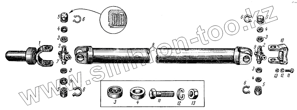 | 5 | 704902 | Подшипник карданного шарнира, игольчатый в сборе | |