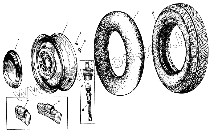 Каталог запасных частей к технике: АЗЛК Москвич-407. Колесо и шина