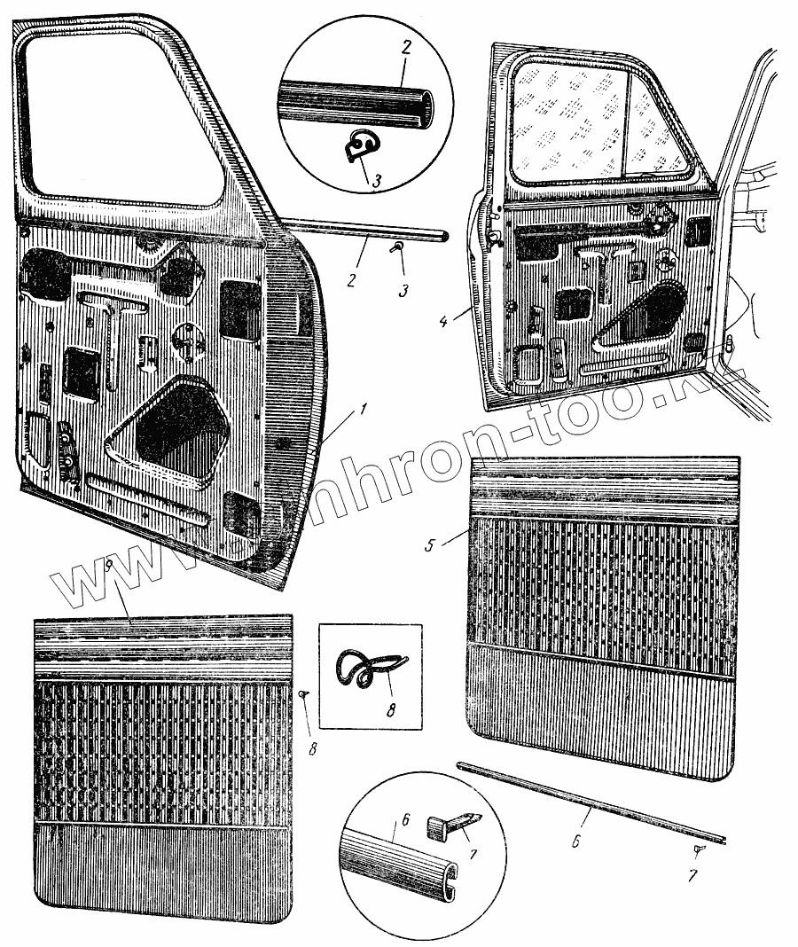Каталог запасных частей к технике: АЗЛК Москвич-407. Передняя дверь кузова