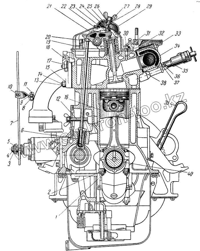Каталог запасных частей к технике: АЗЛК Москвич-407. Поперечный разрез двигателя