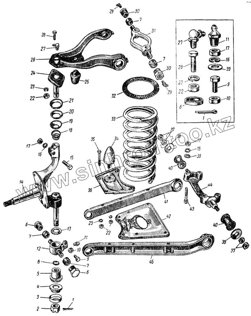 | 30 | 402-2904084 | Втулка резьбовая оси верхнего рычага передней подвески в сборе (комплект) ГАЗ-20-2904086 | |