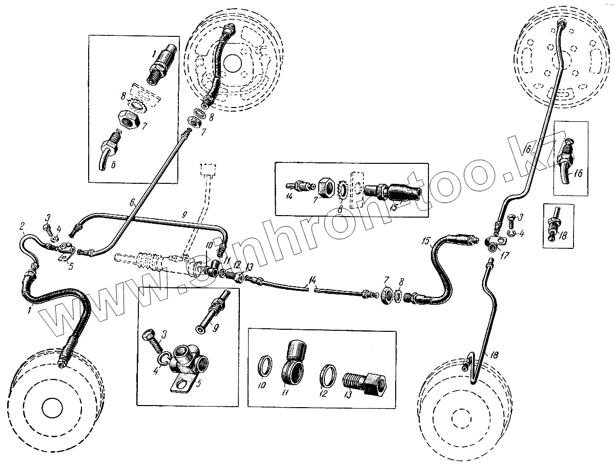 | 18 | 402-3506110 | Трубка от тройника к левому заднему тормозу в сборе |