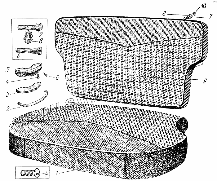 Каталог запасных частей к технике: АЗЛК Москвич-407. Заднее сиденье автомобиля "Москвич 407"