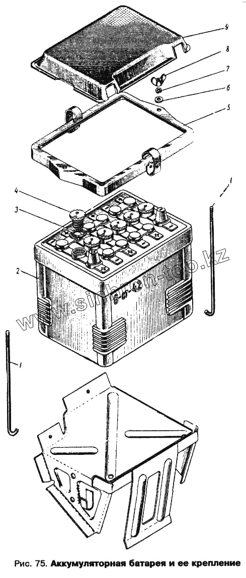 Каталог запасных частей к технике: АЗЛК Москвич 412. Аккумуляторная батарея и ее крепление