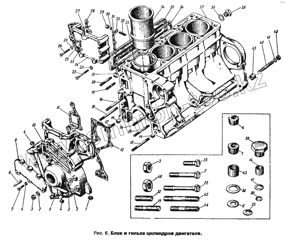 Каталог запасных частей к технике: АЗЛК Москвич 412. Блок и гильзы цилиндров двигателя