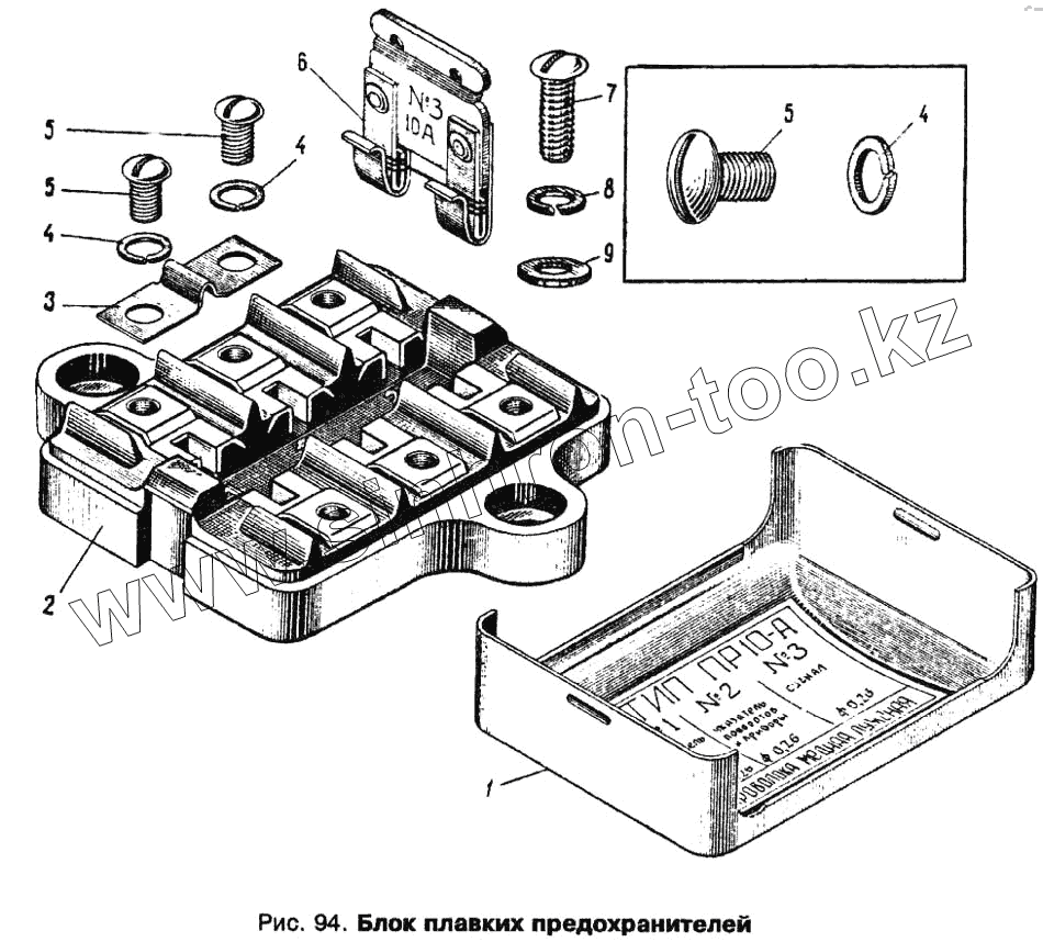 Каталог запасных частей к технике: АЗЛК Москвич 412. Блок плавких предохранителей