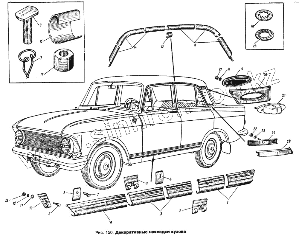 Каталог запасных частей к технике: АЗЛК Москвич 412. Декоративные накладки кузова