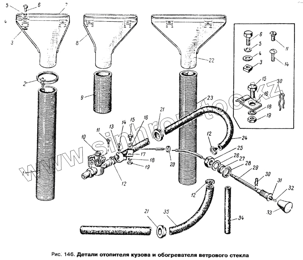 Каталог запасных частей к технике: АЗЛК Москвич 412. Детали отопителя кузова и обогревателя ветрового стекла