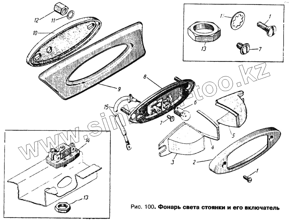 Каталог запасных частей к технике: АЗЛК Москвич 412. Фонарь света стоянки и его включатель