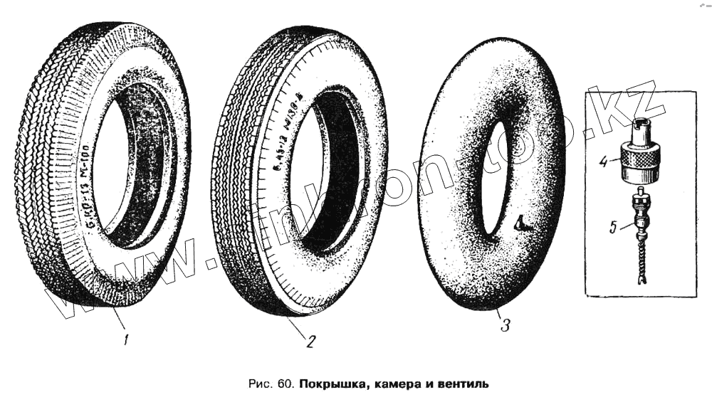 Каталог запасных частей к технике: АЗЛК Москвич 412. Покрышка, камера и вентиль