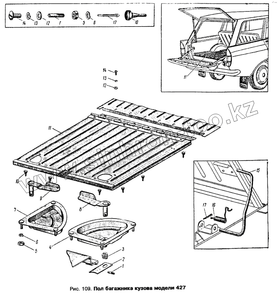 Каталог запасных частей к технике: АЗЛК Москвич 412. Пол багажника кузова модели 427