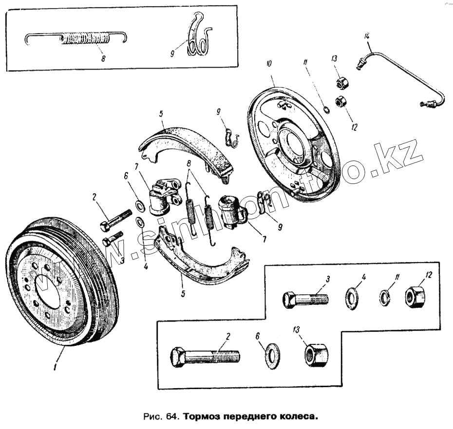 Каталог запасных частей к технике: АЗЛК Москвич 412. Тормоз переднего колеса