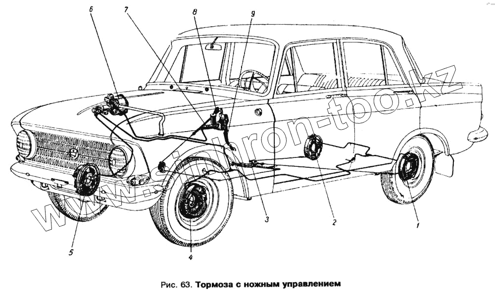 Каталог запасных частей к технике: АЗЛК Москвич 412. Тормоза с ножным управлением