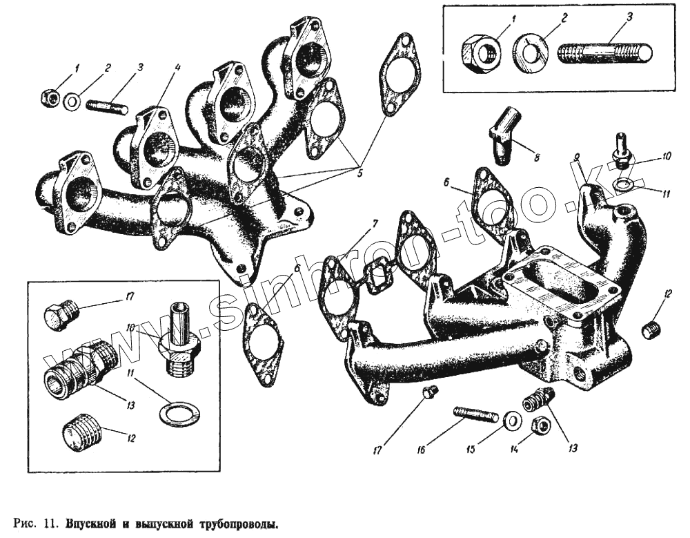 Каталог запасных частей к технике: АЗЛК Москвич 412. Впускной и выпускной трубопроводы