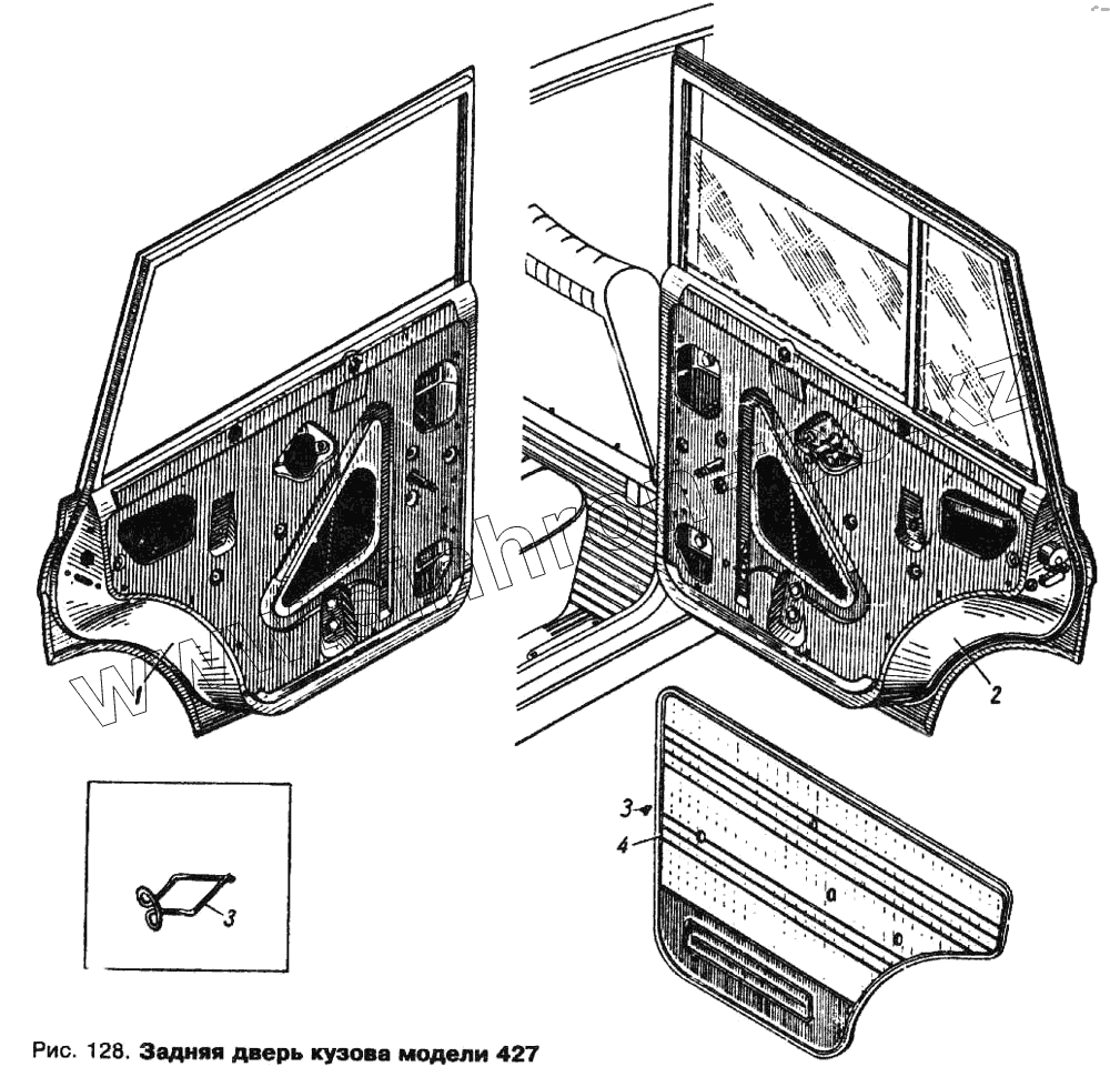 Каталог запасных частей к технике: АЗЛК Москвич 412. Задняя дверь кузова модели 427