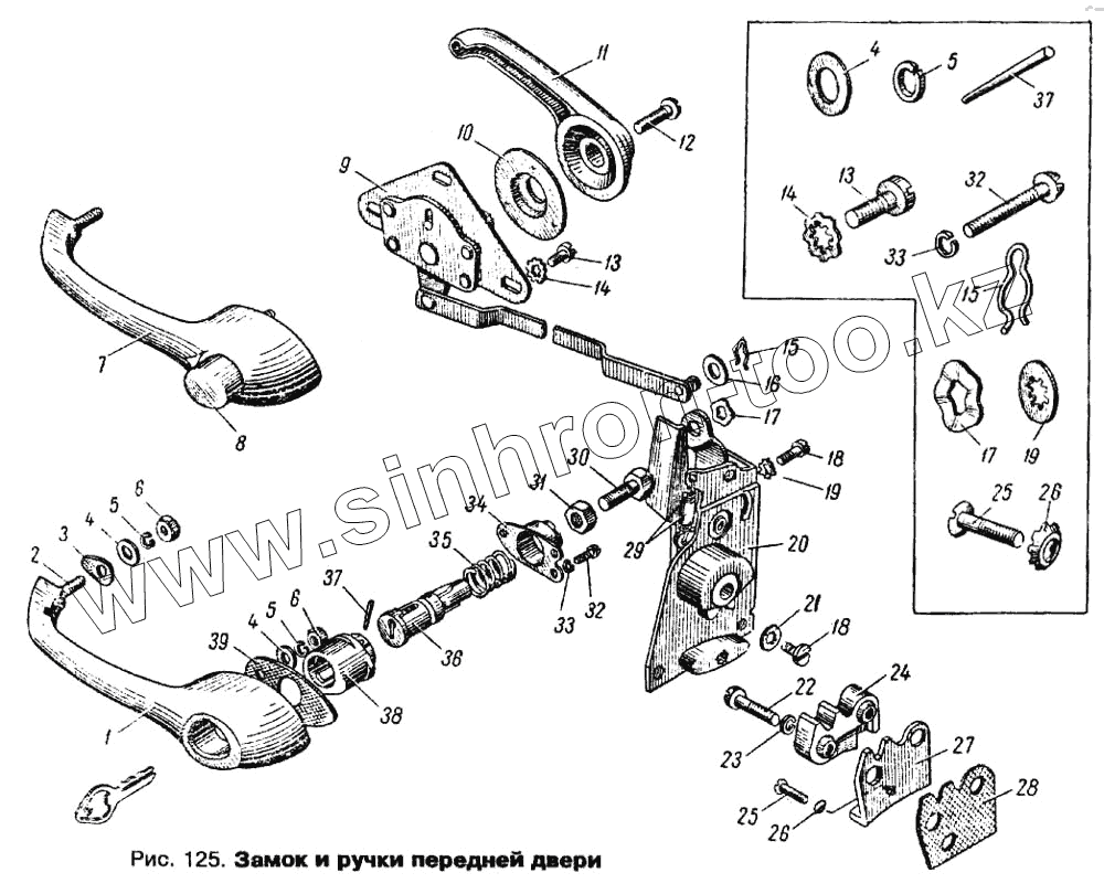 Каталог запасных частей к технике: АЗЛК Москвич 412. Замок и ручка передней двери