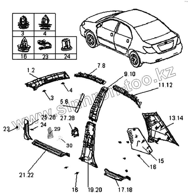 Каталог запасных частей к технике: BYD F3. Элементы внутренней отделки