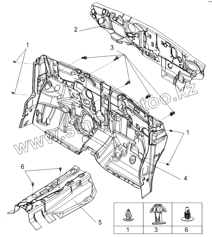 Крепежный зажим C теплоизоляции передней обвязки кузова