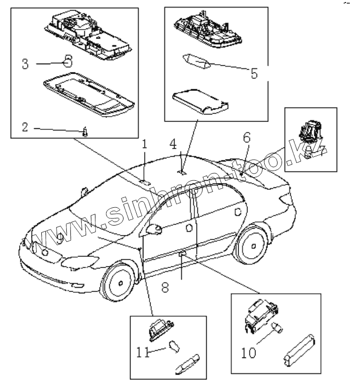 Каталог запасных частей к технике: BYD F3. Передняя лампа освещения салона
