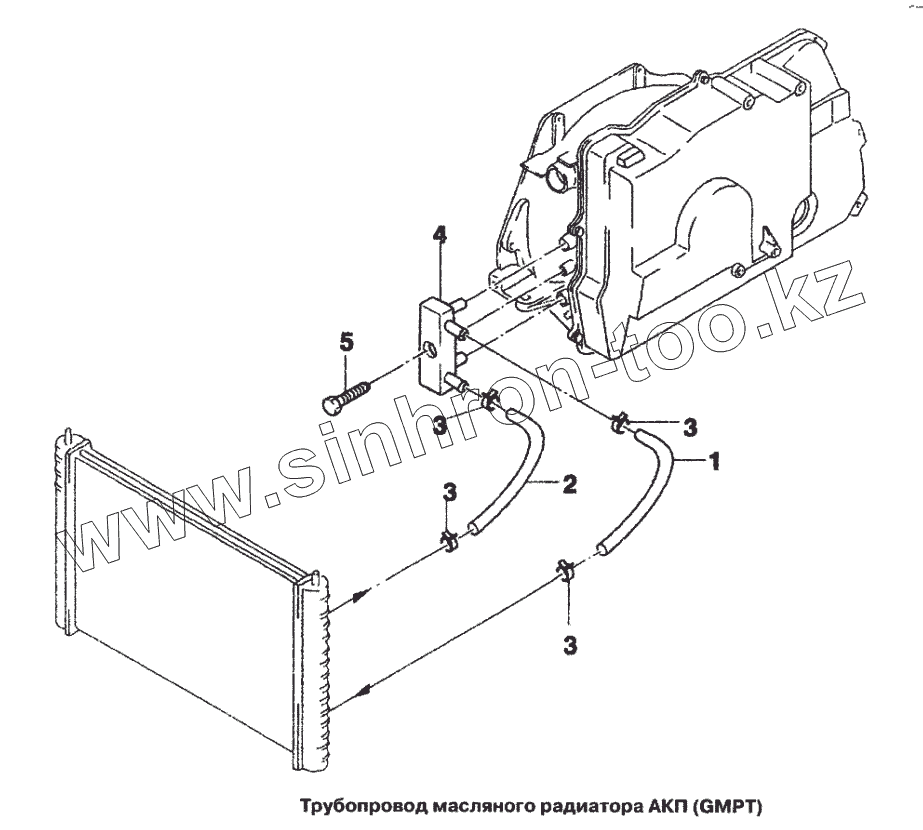 Каталог запасных частей к технике: Chevrolet Lanos. Трубопровод масляного радиатора АКП (GMPT)