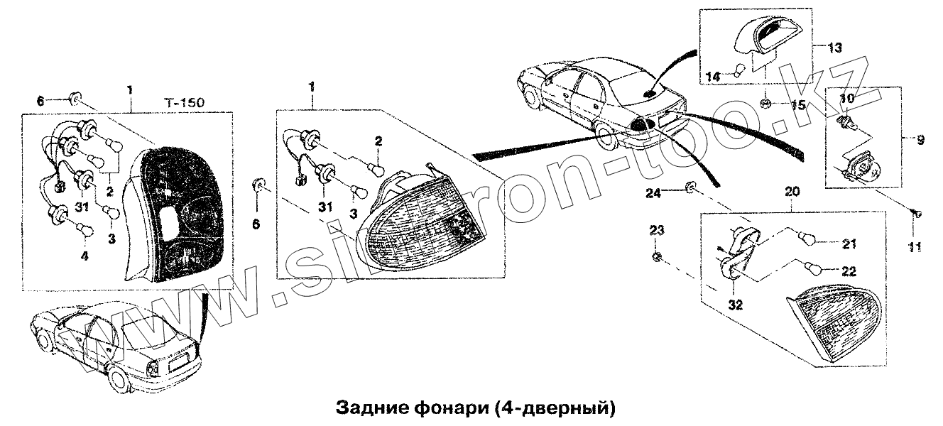 Каталог запасных частей к технике: Chevrolet Lanos. Задние фонари (4-дверный)