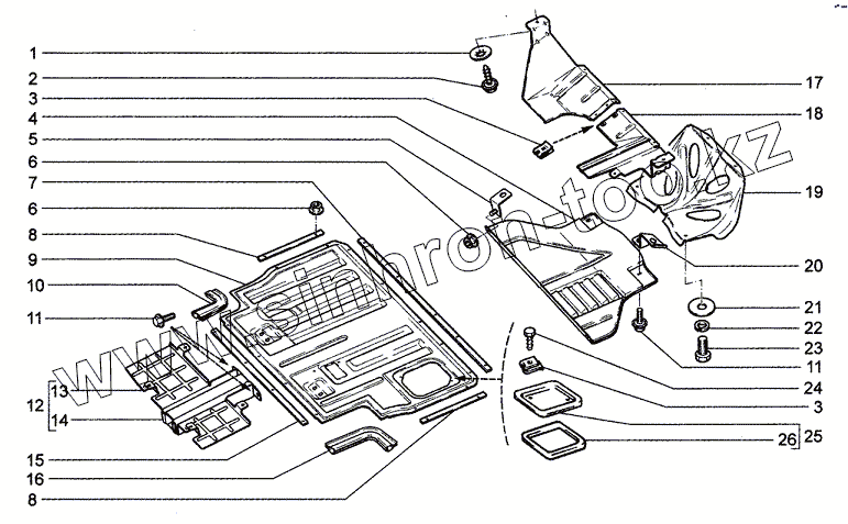 Каталог запасных частей к технике: Chevrolet Niva 1.7. Брызговики и экраны